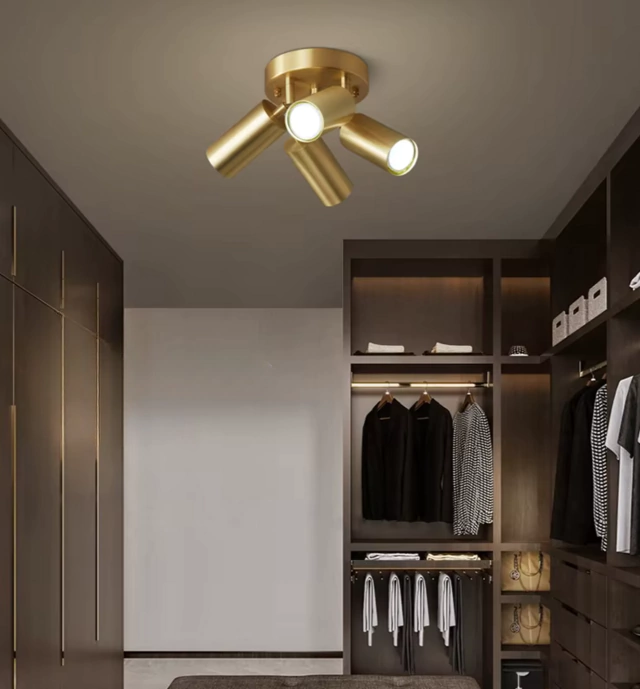 O acabamento em dourado e o material metálico premium conferem ao plafon um toque de sofisticação que eleva o estilo de qualquer ambiente, tornando-o um verdadeiro destaque decorativo.
